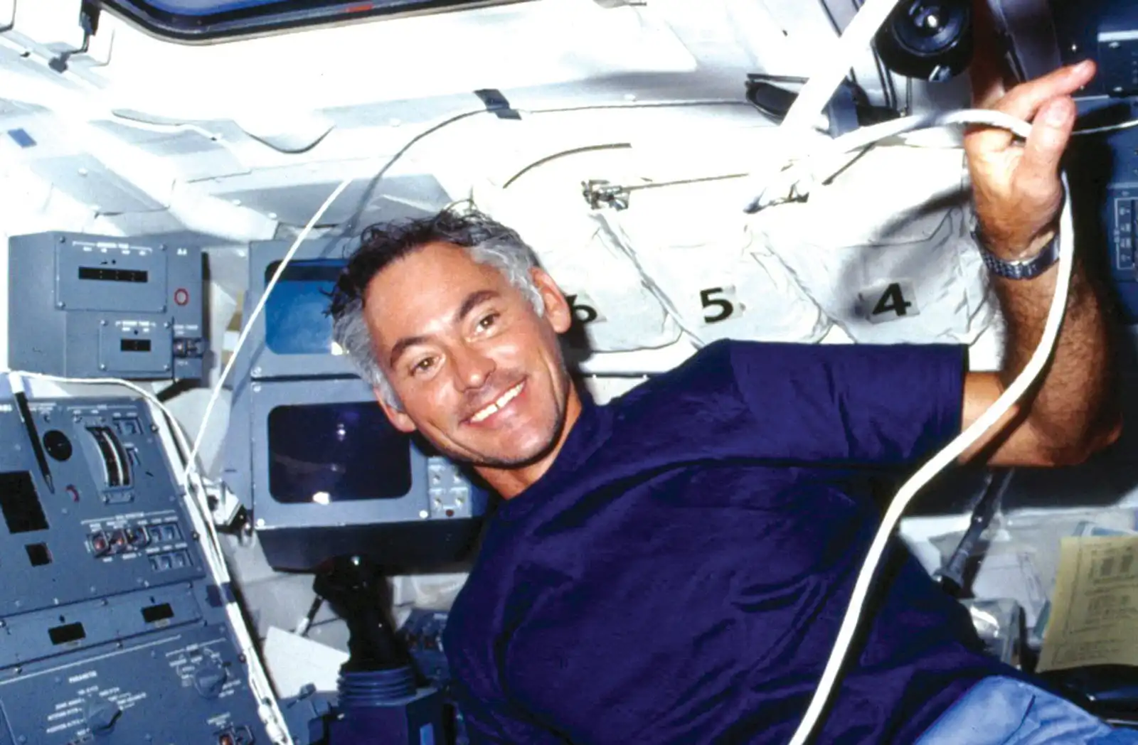 На фото Леро́й Ра́ссел Чиа́о — американский астронавт-исследователь НАСА. Совершил 4 космических полёта общей продолжительностью 229 суток 8 часов 44 минуты 40 секунд. Участвовал в шести выходах в открытый космос (общей продолжительностью 36 часов 19 минут)