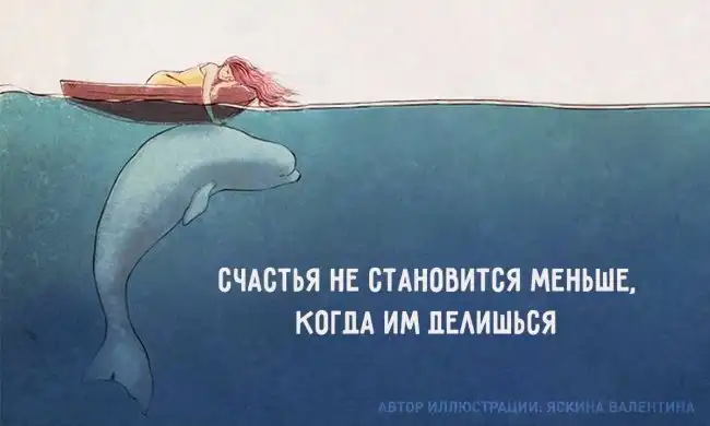Счастья не только не становится меньше — его становится больше. Поэтому не прячьте его от людей, делайте окружающих добрее.