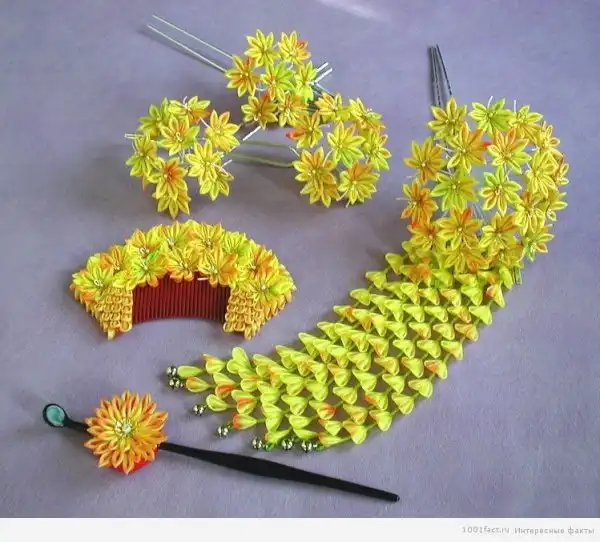 Изначально оно изготавливалось из костей журавля и, как понятно, стоило невероятных денег. Позднее их стали создавать из дерева, как правило, это сакура, магнолия, самшит или же из драгоценных металлов (золота и серебра). В прошлом столетии стали применять латунь или черепаховый панцирь, а также пластмассу. Считается, что в основе техники изготовления украшений лежит искусство оригами, поэтому эти необычные украшения столь разнообразны, а некоторые даже уникальны.