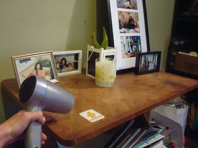 Иногда случается, что наклейка совсем не хочет отклеиваться. Не беда – возьмите фен и немного прогрейте стикер, после чего он с легкостью отойдет.