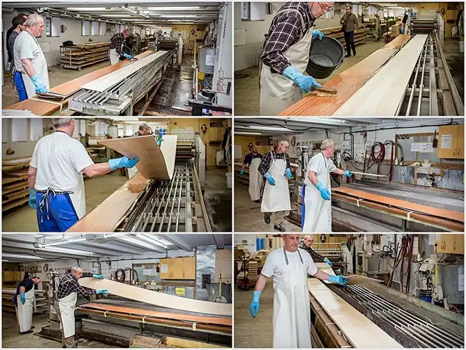 Здесь изготавливают резонансные деки. Дека должна быть гибкая для воспроизведения колебания струн и в то же время прочная: