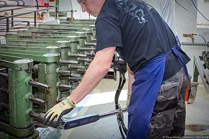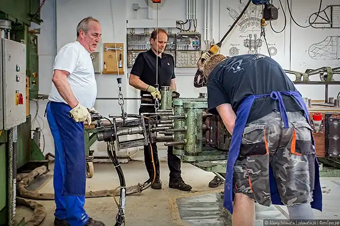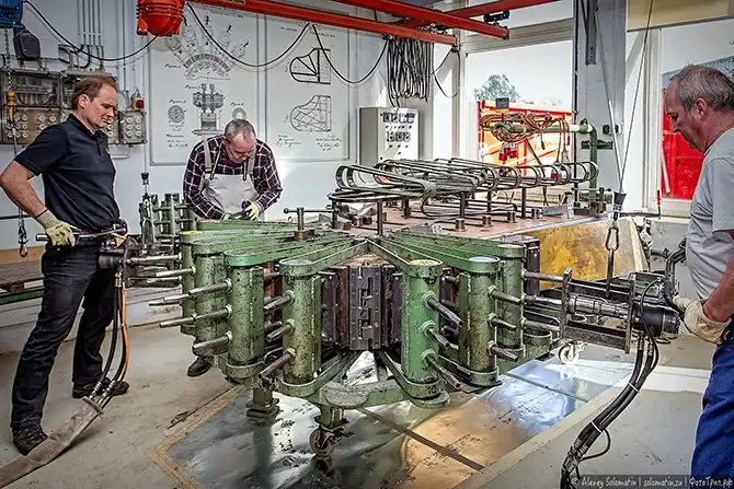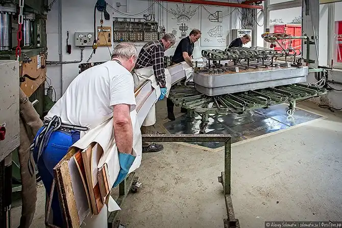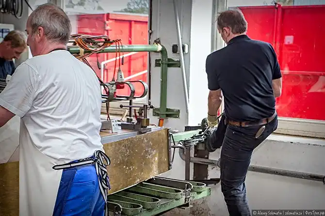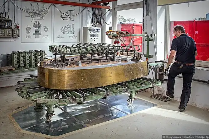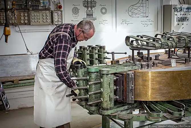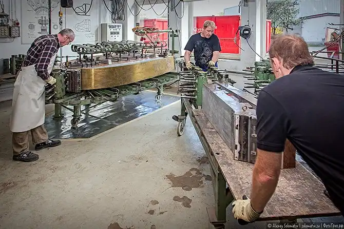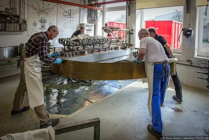 Переходим в цех по производству основной части рояля – бокового остова. По крайней мере я так его называю. Раньше, до основания фабрики Стэйнуэй рояли имели угловатую форму.