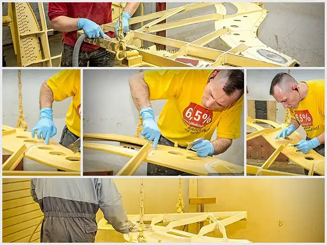В Гамбурге раму обрабатывают, шпаклюют и красят: