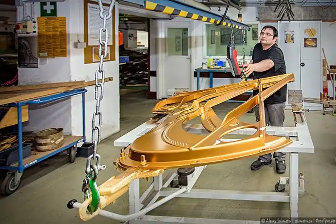 После последней стадии обработки рама становится желтовато-бронзовой с фирменным металлическим оттенком: