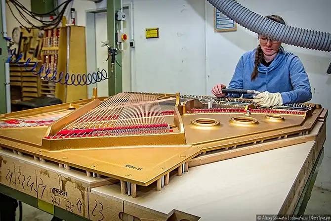 Пока сделаем перерыв исторических сводках и перейдем к самой фабрике. Сегодня фабрики Стэйнуэй находятся в двух городах на разных континентах. Первая в Германии, Гамбурге и вторая в Нью-Йорке на Манхэтене. Немецкая обеспечивает европейских и азиатский рынок, вторая же работает на Америку.