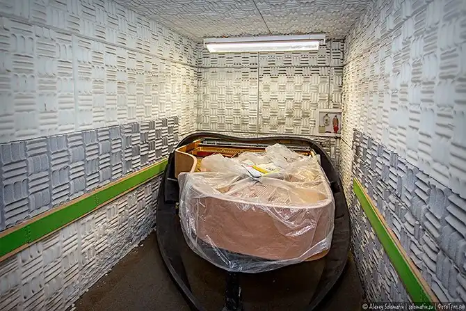 Это комната отделана звукопоглощающим материалом в которой установлен механизм. Сам станок поочередно в хаотичном порядке жмет все клавиши, издавая самую противную какофонию в мире. Впрочем, на этом этапе звук никого не интересует. Здесь проверяется на прочность клавишный механизм в реальных условиях с натянутыми струнами: