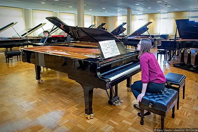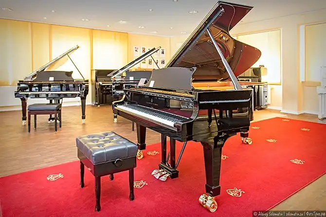 После сборки готовые рояли выставляются в специальном зале, в котором их тестируют приглашенные музыканты: