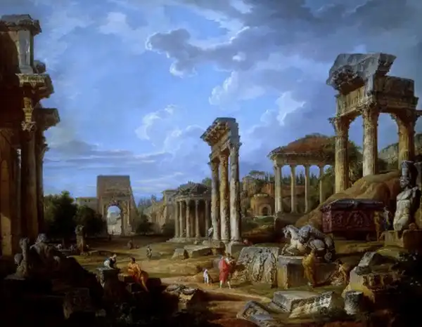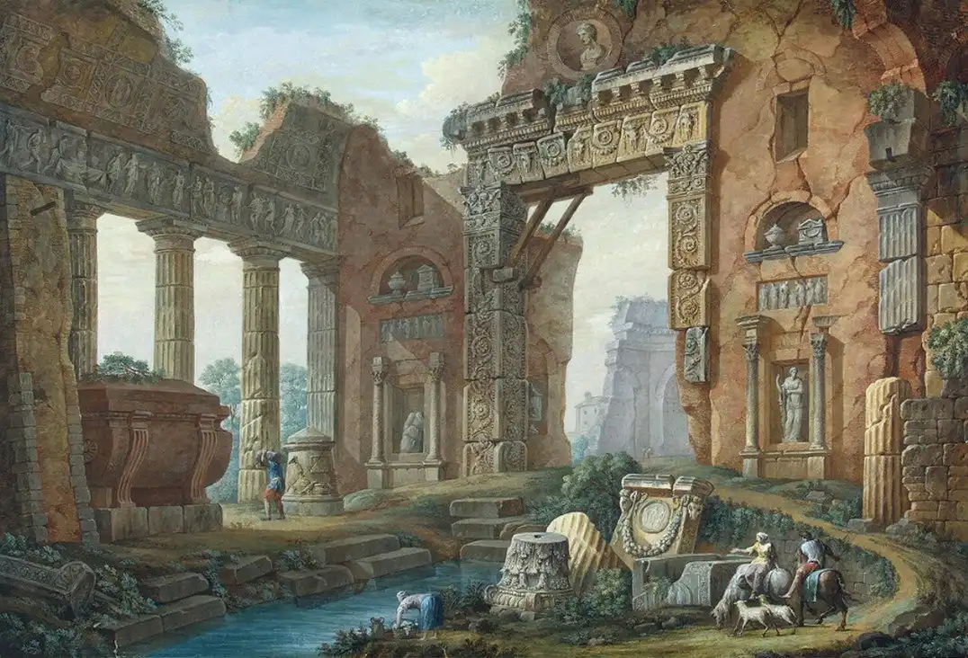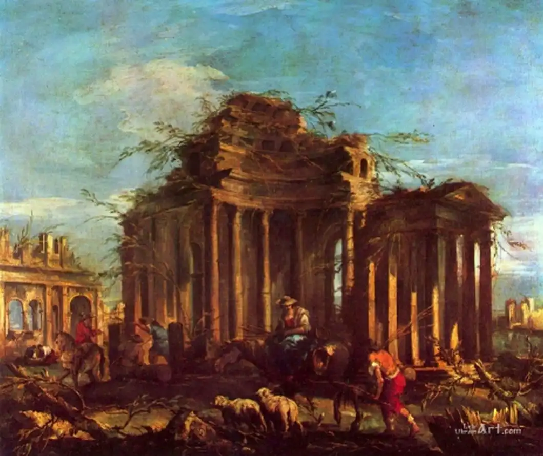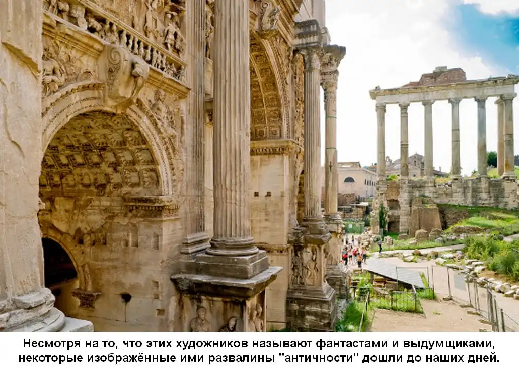 Как мы узнали из первой части, на территории Европы были руины городов прошлой цивилизации, называемые античностью. Некоторая часть руин дошла до наших дней, сильно повреждённые - уничтожены, а часть из них восстановлена и каждая из стран выдаёт их за свою историю. Всё, что связывают историки с этими разрушениями, они относят это к эпохе "древнего Рима". Продолжая обзор руин древнего мира, уже становится понятным, что художники не фантазируют, а просто рисуют то, что их окружает. И если бы такая фантазия была у одного или двух художников, можно было бы поспорить, но их уже набирается с десяток. Все эти массовые разрушения можно объяснить каким-то мощным потоком воды, т.е. потопом, вот только когда это произошло, загадок больше, чем ответов.