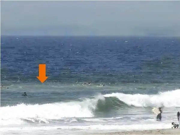 Разрыв в общей структуре приливных волн (сплошная полоса волн, а посередине 5-10-метровый разрыв).