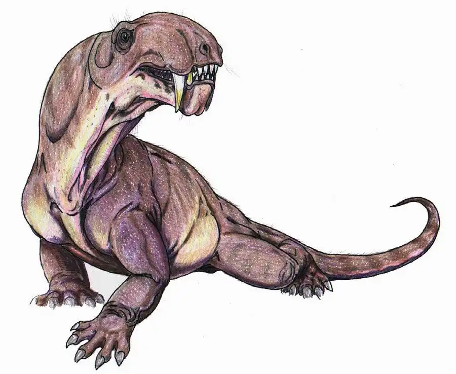 Огромный грозный хищник середины пермского периода. Ранняя версия саблезубого тигра. Длина черепа этого гиганта могла достигать 75 см, а клыков - 15 см. Ивантозавр жил за 40 миллионов лет до появления динозавров и относился к другой, не менее разнообразной группе рептилий — звероящерам, от которых произошли современные млекопитающие.