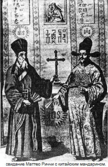 Миссионер и "блистательный иезуит" Маттео Риччи проник в хоромы высших сановников, одевался в халат мандарина, "уверовал" в конфуцианство, объявив его логическим завершением христианства (католического толка, разумеется), знакомил азиатцев с картографией, техническими и научными достижениями Запада и готовил сановников Империи к приезду из Европы "специалистов" по истории.