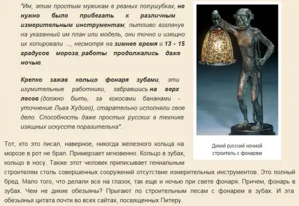 Сочинителям ложной истории человечества было прекрасно известно о том, что в период последнего оледенения Земли, Сибири повезло, там был теплый климат и цивилизация белого ("европеоидного") человека получила своё яркое развитие. Поэтому Ватикан гнал своих агентов дальше - за Урал, чтобы они и там под видом научных исследований жгли архивы, артиллерией, пороховыми минами и стальными зубилами сокрушали памятники истории, искусства и архитектуры славяно-арийских народов Сибири. Искусственным путём шло чёткое разграничение на "цивилизованную" Европу и "недоразвитую" Азию.