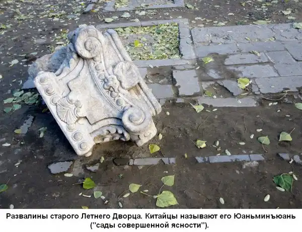 Бесценное собрание фарфора и прочее содержимое дворца по приказу лорда Элджина было разграблено. Участвовавший в уничтожении Чарлз Джордж Гордон писал: "С трудом можно себе представить красоту и великолепие сожжённого нами дворца... Мы уничтожили, подобно вандалам, поместье столь ценное, что его не удалось бы восстановить и за четыре миллиона". Виктор Гюго сравнил Британию и Францию с "двумя разбойниками, которые ворвались в музей, опустошили, разграбили и сожгли его, а затем со смехом ретировались вместе с мешками, набитыми сокровищами". В печати периодически появляются сообщения о планах восстановления дворца в первоначальном виде, однако пока что была отстроена лишь его миниатюрная копия в южном городе Чжухай. Но главное, те артефакты, что связывали нас и Китай, уже не вернуть.