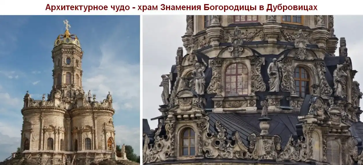 Все мы помним выражение: "Москва белокаменная", но после нашествия Наполеона, от белокаменной остались одни осколки. Вот один из этих чудом сохранившихся осколков дошел до наших дней. Сейчас это храм Знамения Богородицы в Дубровицах - православный храм в честь иконы Божией Матери "Знамение". Расположен в посёлке Дубровицы, Подольского района, Московской области, примерно в 36 километрах от центра Москвы (16 км от МКАД), в окрестностях Подольска. Центральная часть архитектурного ансамбля усадьбы Дубровицы, некогда принадлежала представителям старинных дворянских семей Морозовых, Голицыных и Дмитриевых-Мамоновых. Приход храма относится к Московской епархии Русской православной церкви, входит в состав Подольского благочиннического округа. Настоятель - протоиерей Андрей Евгеньевич Грицышин.