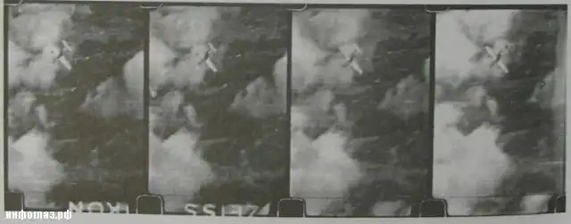 Кадры ФКП с Ла-7 Кожедуба, запечатлевшие последние секунды полета американского «Мустанга», опрометчиво атаковавшего советского аса в берлинском небе 17 апреля 1945 г.