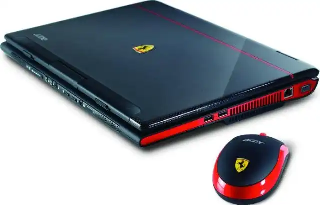 9.Элитный ноутбук - Acer Ferrari 1100: Тайваньская компания Acer представила свою новую имиджевую модель ноутбука под названием - Ferrari 1100. Данный девайс оснащен довольно мощной начинкой, которая включает в себя: процессор AMD Turion 64 X2 с тактовой частотой 2.0Ггц, 2 гигабайта оперативной памяти формата DDR2-667 (PC2-5200), жесткий диск объемом в 250Гб. Также гаджет оснащен жидкокристаллическим дисплеем TFT с диагональю 12.1 дюйм и разрешением 1280 x 800 WXGA 16:10. В комплект поставки входят: элегантный черный чемодан с логотипом производителя, Bluetooth-мышка, набор инструкций и руководство пользователя, гарантийный талон, блок питания и сетевой кабель, кожаный чехол и тряпочки для ухода за устройством. Его габариты 30.4х3.4х22.8 сантиметров, а весит он 1.95 килограмма. Максимальное время работы в автономном режиме от одного полностью заряженного аккумулятора при беспрерывном использовании достигает примерно 4 часов. Стоимость Acer Ferrari 1100 составляет приблизительно 3000 долларов США.
