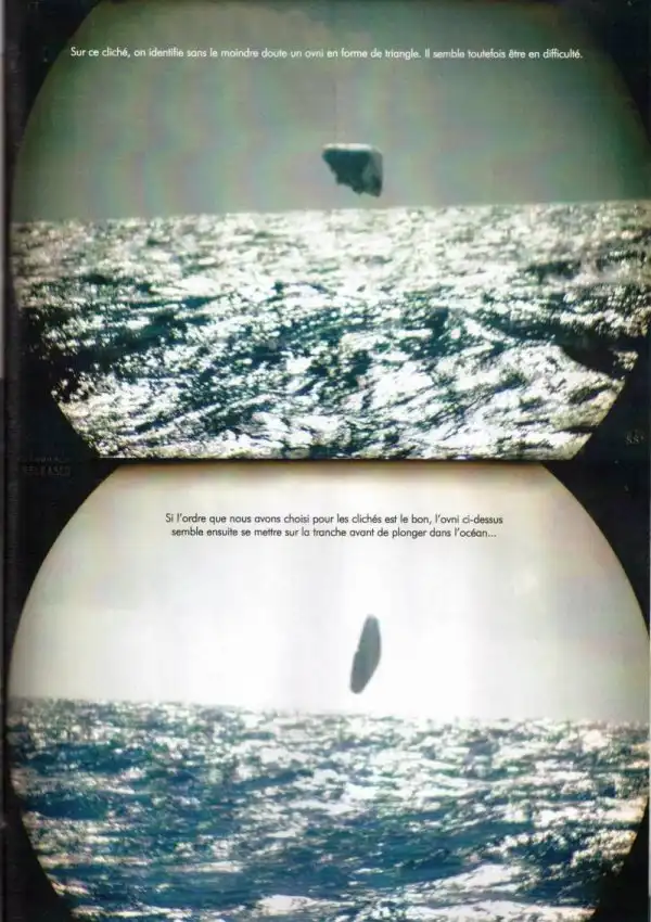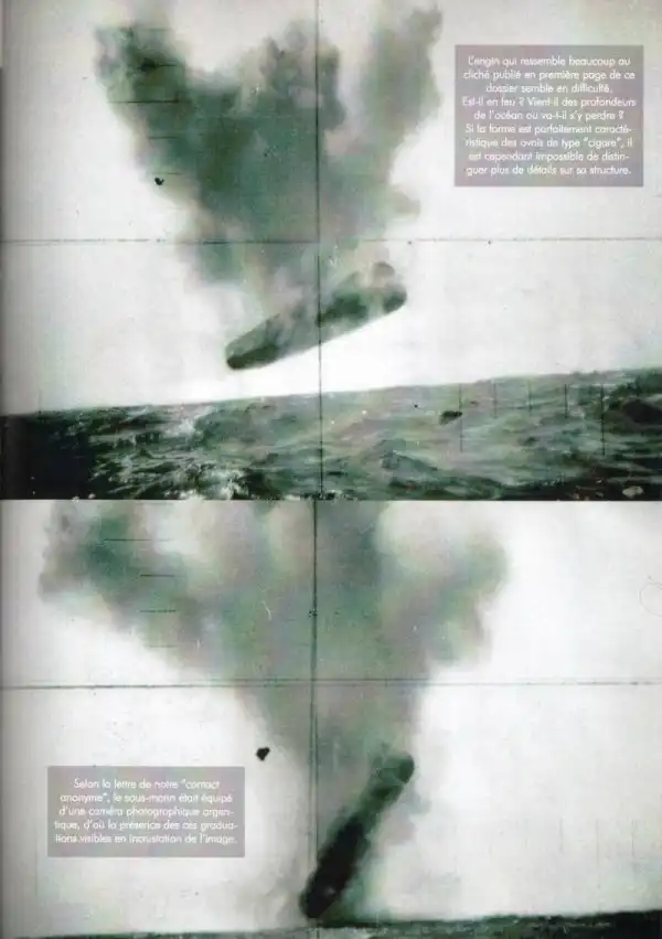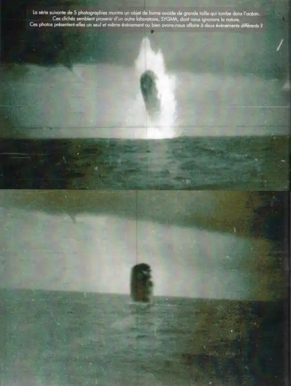 Впервые фотографии были опубликованы во французском журнале Top Secret, а затем их растиражировали таблоиды других европейских стран. На снимках, как обычно не отчетливо, видны загадочные объекты разной формы. Они то ныряют в океан, то выныривают из него.