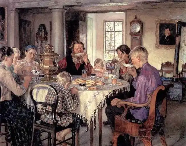 На Руси утро именинника начиналось с молитвы, а затем устраивались чаепития.