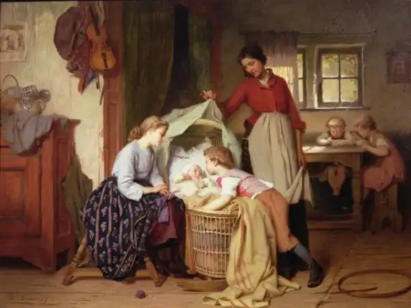 На Руси детей старались рожать дома, а ещё лучше – в бане, в тепле, подальше от чужих глаз. Следуя приметам, чтобы облегчить роды, роженице расплетали косы, с неё снимали украшения, распоясывали. Все сундуки, шкафы, окна и двери следовало открыть. Помогали роженицам повитухи, причем делали они это не только во время родов, но еще и вели хозяйство на протяжении 8 дней после.