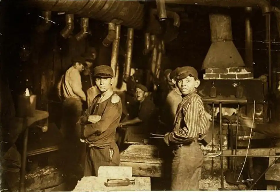 В начале 20 века в Америке случилась промышленная революция. Иммигранты приезжали в Америку с надеждой на прекрасное будущее, которое они не ждали у себя на родине. В это время США становятся "гигантским плавильным котлом", для многих переселенцев, которые хотели стать американцами. В 1920-е годы, США переживали бурный экономический подъем. Однако уже в октябре 1929 Уолл-стрит рухнул, и это стало крупнейшей экономической катастрофой в истории Америки. Последовавший экономический кризис, названный «великой депрессией», продолжался в течение целого десятилетия. Миллионы людей потеряли свои состояния и превратились в нищих. Сейчас сложно представить себе эксплуатацию детского труда на американских производствах, а в начале минувшего века рабочие руки несовершеннолетних использовались в США повсеместно. На снимках столетней давности вы увидите малышей из бедных семей эмигрантов, которые вкалывали от рассвета до заката за мизерную зарплату, для того, чтобы помочь своим родителям прокормить многодетные семьи, хотя работали они, зачастую на очень трудных и опасных работах. Не смотря ни на что, они стойко пережили трудности ускоренной индустриализации и кризисное время.