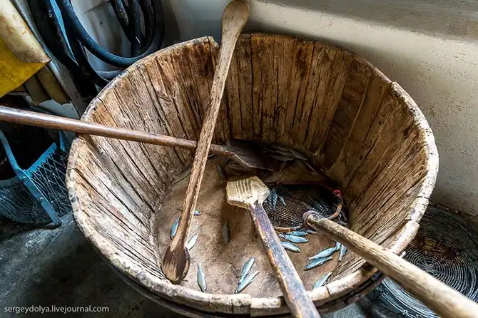 Сперва рыбу «засаливали» в больших деревянных чанах: