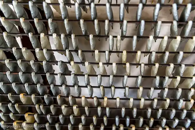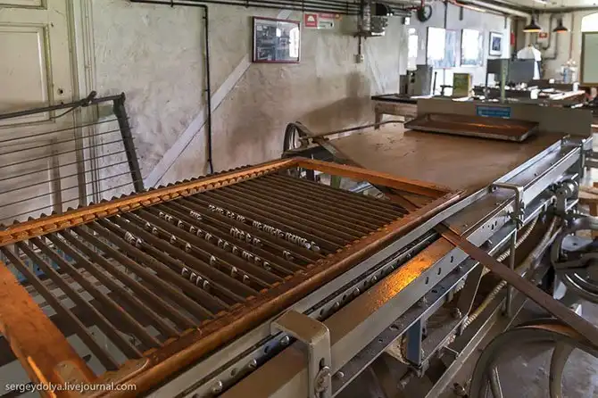 Затем шпроты доставали и клали на специальный стол, где одним взмахом промышленного ножа, всем рыбинам в рамке удалили головы. До изобретения этой штуки «на головах» работали дети, вооруженные ножницами. Их производительность составляла 4 рамки в час. С аппаратом она поднялась до 10 рамок в минуту. Детей уволили: