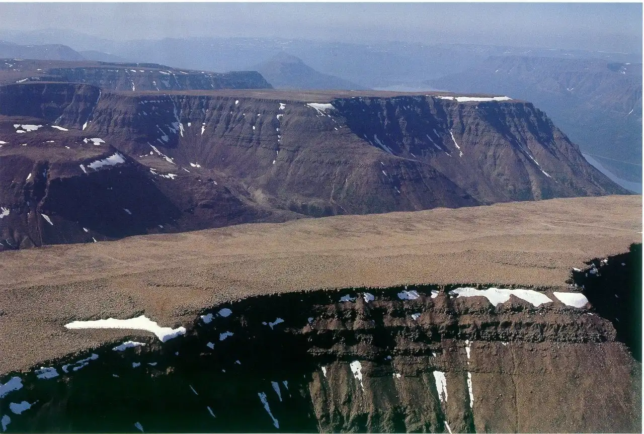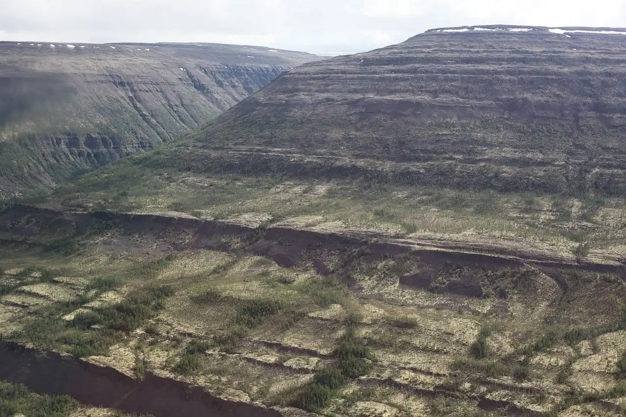 Науке - прежде всего геологии и геоморфологии - эта гористая местность дарит классический образец так называемого траппового, или ступенчатого, рельефа. Это целый комплекс высоких плосковершинных массивов, разделенных глубокими и широкими ступенчатыми каньонами. Такой рельеф возник здесь в результате поднятия древнего лавового плато, образовавшегося (еще на рубеже палеозоя и мезозоя) при излиянии огромной массы раскаленных базальтов, что привело к появлению в лавовой толще гигантских тектонических разломов. Ввиду различной прочности горизонтально залегавших базальтовых и туфовых слоев склоны образовавшихся ущелий приобрели ярко выраженный ступенчатый характер. Мощность лавового покрова в центре Путорана достигает 1500 м, и там, где склоны гор обнажены, в нем можно насчитать до 40 слоев.