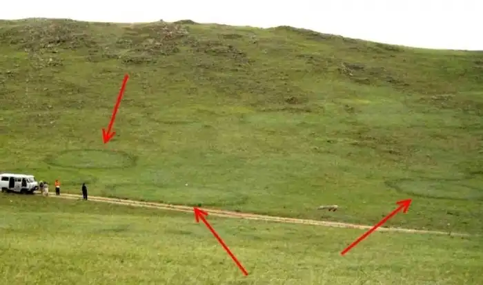 По дороге к соленому озеру Шара-Нур, в 3 километрах от западного берега острова, можно встретить интересное явление — загадочные oльxoнские круги. Они появляются сами собой на полях, никогда не знавших пашни. Никаких признаков вытаптывания, наоборот: по границе идеально ровной окружности возникает полоска более сочной и высокой травы — она особенно хорошо заметна на обычно сухих участках земли. Загадочные круги на полях известны народам разных стран — для них даже придумали название «ведьмины круги» Так как, по легенде, они появляются здесь из-за хороводов ведьм. Исследователи пока определили, что интенсивный рост растений в кольцах не связан с особенностями грунта или подземными источниками воды.