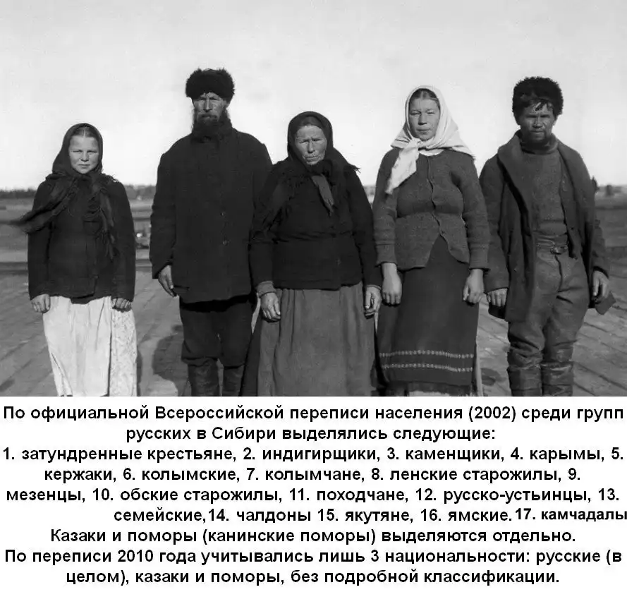 Коренное население Сибири четко различало послеермаковских переселенцев, считавшихся колонизаторами, и местных русских, как живших здесь, так и пришедших "за Камень" (Уральские горы) много раньше своих соотечественников, не похожих на европейских собратьев ни диалектом, ни менталитетом.