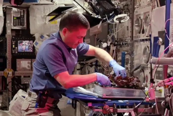 На Марсе люди не смогут рассчитывать на регулярно пополняемые с Земли запасы пищи. Поэтому члены пилотируемых миссий должны научиться сами выращивать необходимые сельскохозяйственные культуры (в частности зерновые) непосредственно на станции на поверхности Красной планеты. В эксперименте Veggie, на Международной космической станции (МКС) при помощи светодиодов (красного, синего и зеленого) астронавты вырастили салат.