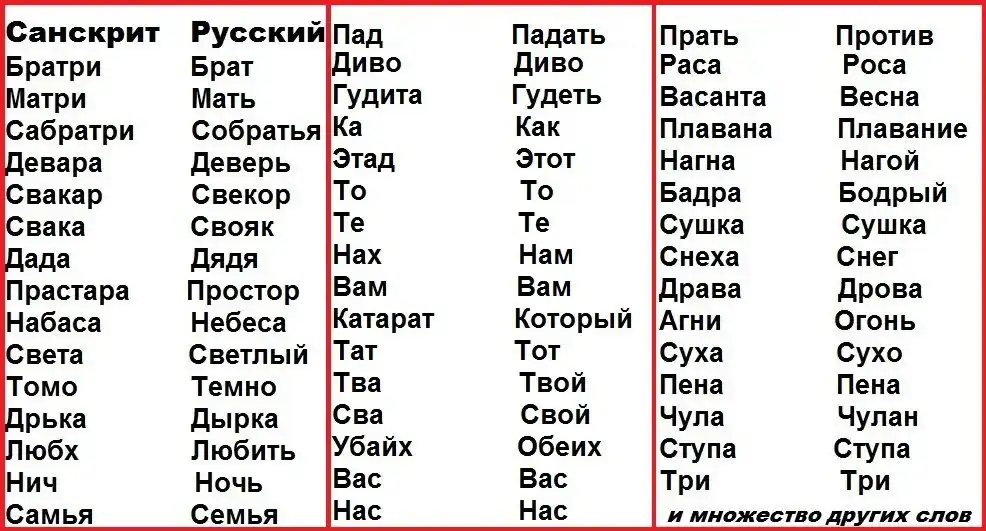Действительно, слова санскрита очень похожи с русскими словами, особенно по звучанию.