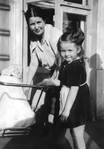 Ирена в 1951 году, с детьми-Янкой и Адамом.