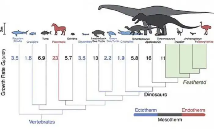 Некоторые динозавры, возможно, были теплокровными. Изучение скорости роста динозавров, а также их зубов, режимов расхода и потребления энергии указывает на то, что они, возможно, были теплокровными животными. Правда, среди палеонтологов еще нет однозначного мнения, и прямо сейчас в ученой среде кипит серьезная дискуссия по этому поводу.