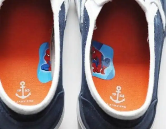 Половина наклейки, наклеенная в обуви поможет ребенку быстрее запомнить на какую ногу ему следует надеть левый или правый ботинок.