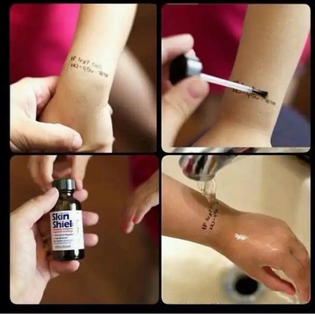 Многие дети любят временные татуировки, нанесите на руку ребенка "тату" с вашими координатами, на случай, если ребенок вдруг потеряется.