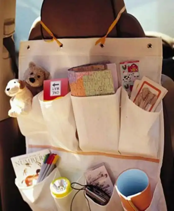 Органайзер для обуви может стать пеналом для детских игрушек в дальней поездке.