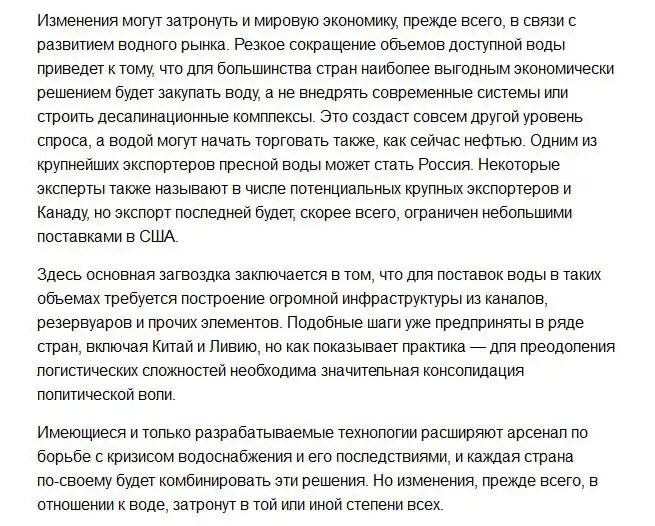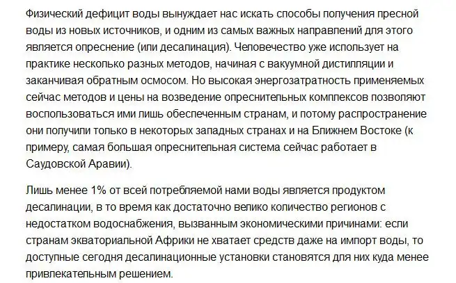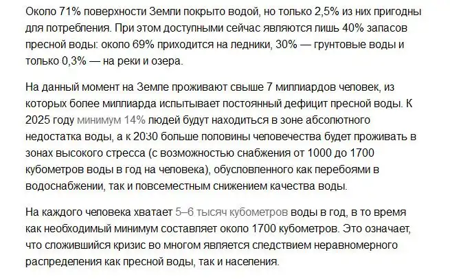 Уже сейчас огромное количество жителей нашей планеты живет в условиях дефицита чистой воды, а в будущем эта проблема может еще больше усугубиться, если не будут приняты соответствующие меры.
