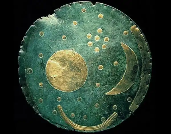 Названный по имени немецкого города, где он был обнаружен в 1999 году, «небесный диск из Небры» является старейшим изображением космоса, когда-либо найденным человеком. Диск был захоронен рядом с долотом, двумя топорами, двумя мечами, и двумя кольчужными наручами около 3600 лет назад.