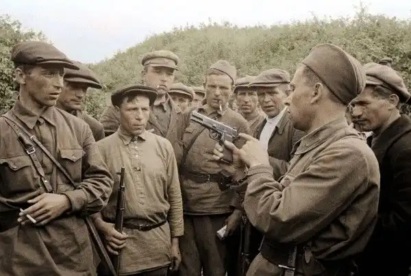 Рядом с возкой лежал ручной пулемёт, я попробовал из него стрелять и хотел взять себе, но командир не разрешил, тогда взял немецкую винтовку и опоясался пулемётной лентой, надо мной бойцы посмеивались, но за то патронны были у меня вольные.