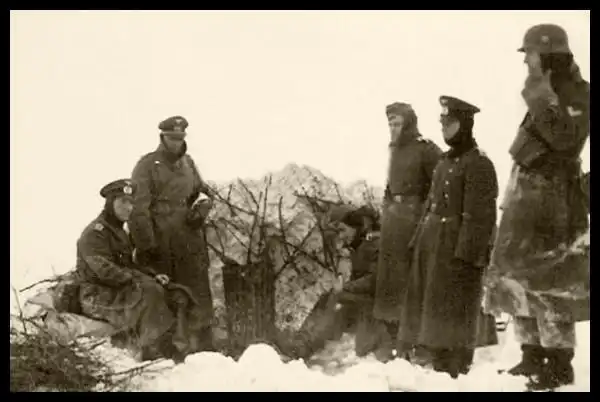 Во время затишья его перенесли в дом, перевязали. Немцы открыли огонь из пушек, пехота стала окружать нас. В белых халатах их было трудно различать на снегу.