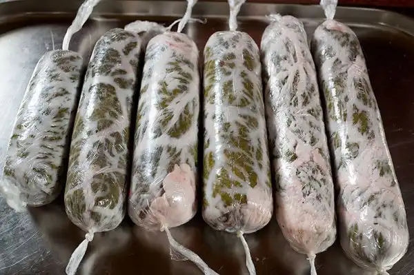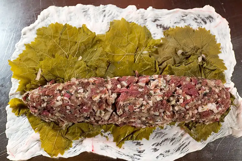 Потому что на стол надо выложить кусок сальника, а поверх него несколько виноградных листьев.