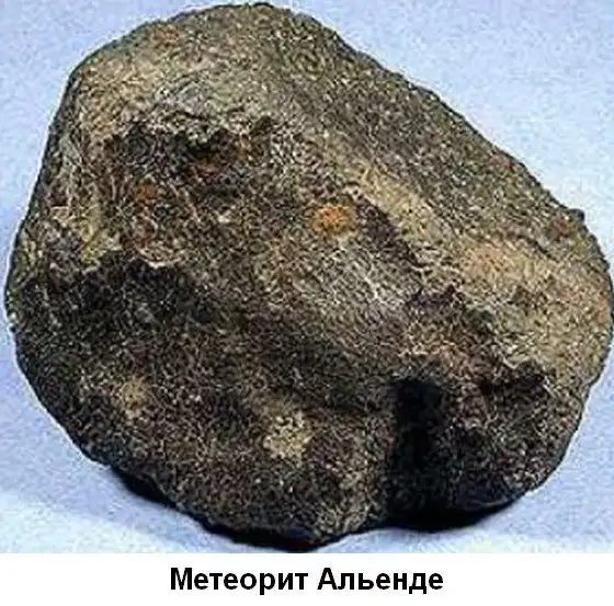 Включения никелистого железа есть в большинстве каменных метеоритов, поэтому космические камни, как правило, тяжелее земных. Главные же их минералы - силикаты (оливины и пироксены). Характерным признаком основного типа каменных метеоритов - хондритов - является наличие внутри них округлых образований - хондр. Хондриты состоят из того же вещества, что и весь остальной метеорит, но выделяются на его срезе в виде отдельных зернышек. Их происхождение пока не вполне ясно.