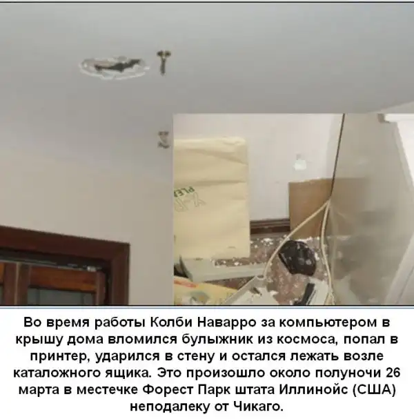 В Германии был прецедент: мальчик заявил, что на него тоже упал метеорит во время похода в школу. 14-летний школьник сказал, что видел вспышку света, а после его сбил метеорит размером с горошину. Кто знал, что галька может быть такой опасной.
