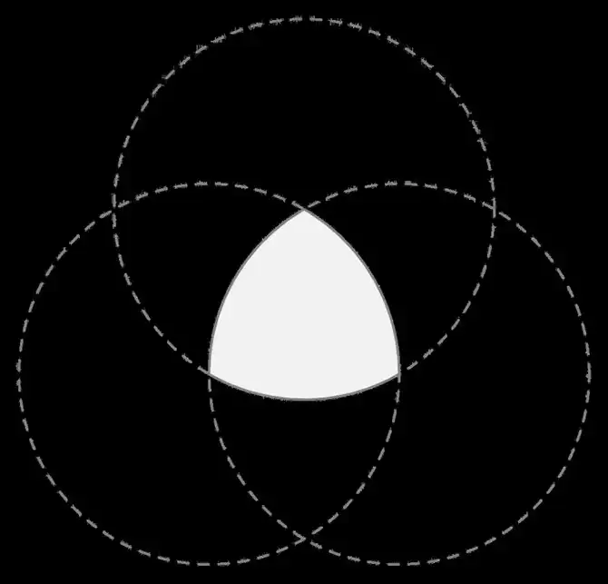 5. Треугольник Рело — это геометрическая фигура, образованная пересечением трёх равных кругов радиуса a с центрами в вершинах равностороннего треугольника со стороной a. Сверло, сделанное на основе треугольника Рело, позволяет сверлить квадратные отверстия (с неточностью в 2%).
