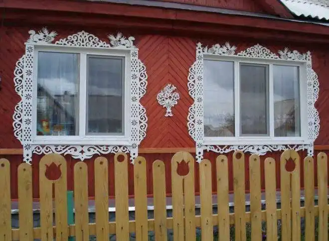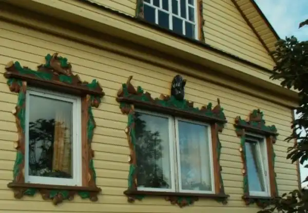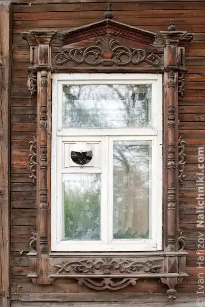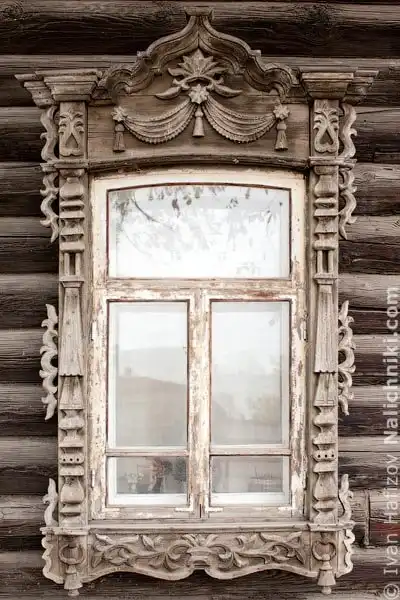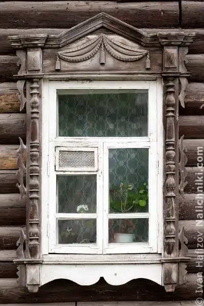 Резные наличники в русских домах всегда были не только эстетическим элементом, но и оберегом, который был призван оберегать дом от проникновения в него «тьмы и навьев». Поэтому главными мотивами резьбы было изображение природных сил - "тверди небесных", "хлябей небесных" и Солнца, встречались и реалистичные изображения животных.