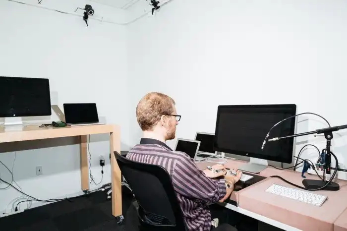В лаборатории инженеры отслеживают поведение человека во время взаимодействия с техникой при помощи сенсоров, которые крепятся на кожу человека. По словам вице-президента Apple по продуктам и технологиям Кейт Бергерон, разработчики отслеживают мышечную память, усталость и акустику.