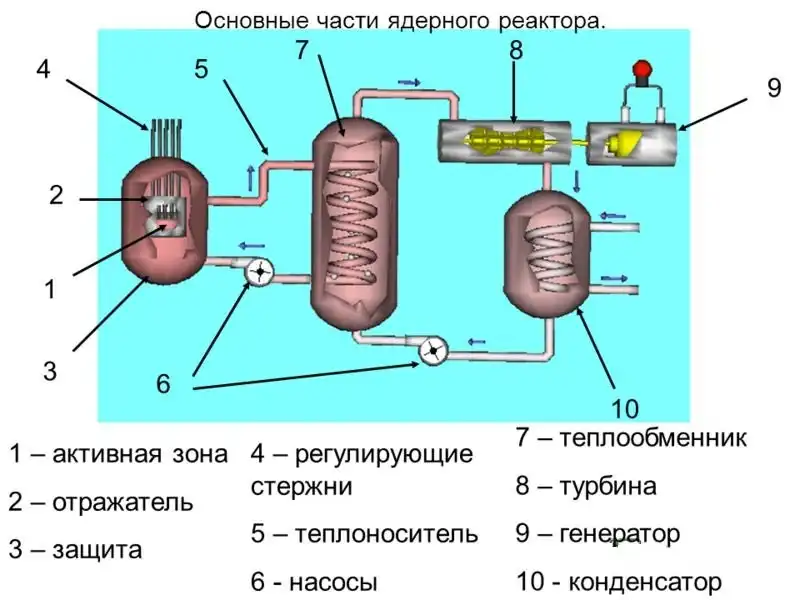 В нашей стране в ядерной энергетике используются, в основном, два типа энергетических ЯР, работающих на тепловых нейтронах: водо-водяные гетерогенные реакторы (ВВЭР) и реакторы с графитовым замедлителем и водой в качестве теплоносителя. В реакторах ВВЭР замедлителем и теплоносителем является обычная вода, а в качестве ядерного горючего используется обогащенный уран (3,5% урана-235). Такие реакторы называют "корпусными", т.к. размножающая среда (активная зона) находится внутри корпусов, к качеству которых предъявляются очень высокие требования: они должны выдерживать высокое давление (примерно 10 МПа) при высокой температуре (примерно 300 градусов Цельсия). В реакторах второго типа через замедлитель (графит) проходят трубы (каналы), в которых размещается ядерное горючее и через которые пропускается теплоноситель (вода). Давление пароводяной смеси на стенки каналов намного меньше, чем давление на стенки корпуса реакторов ВВЭР, и толщина труб всего около 1 мм, тогда как стенки корпусных реакторов имеют толщину не менее 10 см. Это является преимуществом "канальных" реакторов по сравнению с корпусными. У реакторов второго типа есть также и другие преимущества: в них можно использовать слабо обогащенный уран (1,5-2% урана-235); замена ядерного горючего возможна при работающем реакторе, тогда как для замены топлива в корпусном реакторе требуется остановка реактора на 2-3 недели.