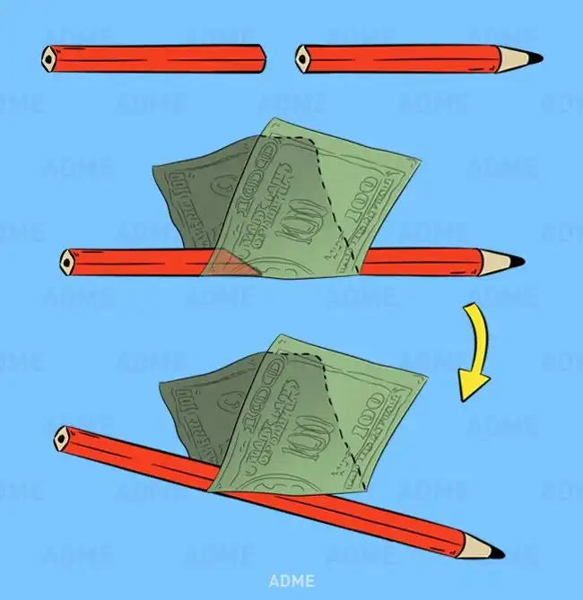 Раньше народ недоумевал, когда Копперфильд прямо на глазах у людей рвал сложенный пополам доллар, затем разворачивал его и он оказывался целым. А секрет здесь в хитро устроенном карандаше: на самом деле он разрезан наискосок и соединен сильными магнитами! Таким образом, купюра легко проходит между его намагниченными половинками и остается невредимой.