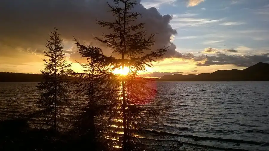 Саха Якутия. Дорога на Оймякон. Закат на озере Улуу.