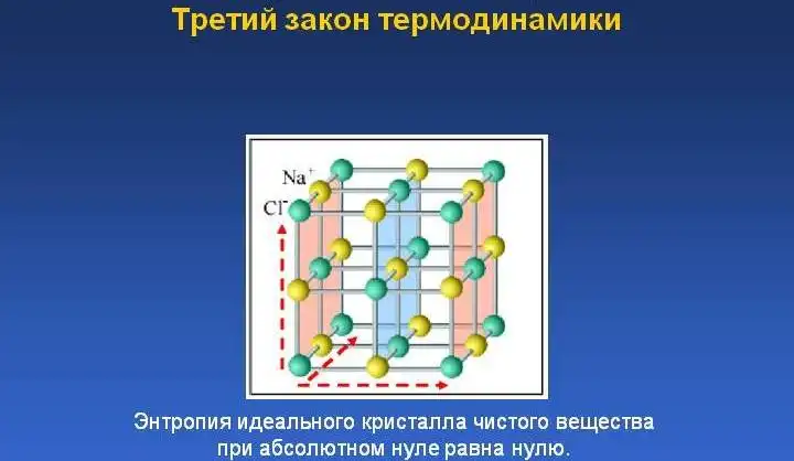 Ну и кратко обратимся к теореме Нернста, которую часто называют третьим законом термодинамики и которая тесно связана с энтропией системы. Первоначально эта теорема применялась только к конденсированным системам, но затем ее использование было распространено также и на газы. Сформулируем эту теорему так: энтропия любой системы при абсолютном нуле всегда может быть принята равной нулю. Физически теорема Нернста может быть интерпретирована так: все возможные состояния системы при температуре Т=0 имеют одинаковую энтропию.
